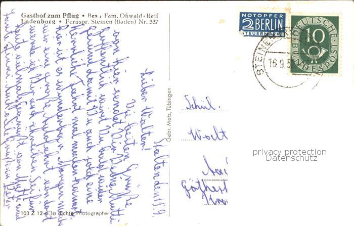 31849559 alte Postkarte Endenburg Panorama Gasthof zum Pflug postalisch gelaufen Erhaltung siehe scans KatCode: 11110008336084