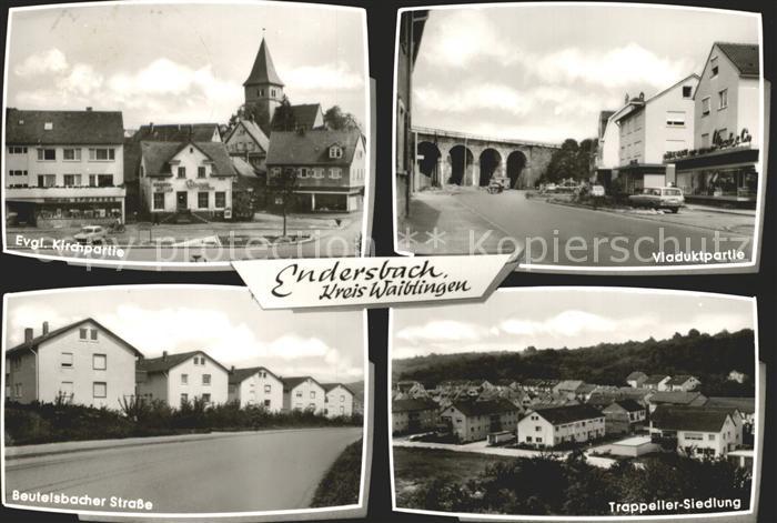 72069586 alte Postkarte Endersbach Kirche Viadukt Trappeller Siedlung Beutelsbacher Strasse postalisch gelaufen Erhaltung siehe scans KatCode: 11110008119091