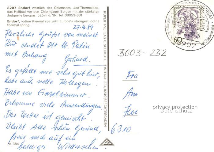 73209782 alte Postkarte Endorf Bad Hochries Kampenwand postalisch gelaufen Erhaltung siehe scans [NatalD47] KatCode: 11110009187128