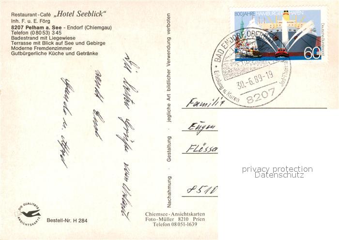 73167470 alte Postkarte Endorf Chiemgau Restaurant Cafe Hotel Seeblick postalisch gelaufen Erhaltung siehe scans [KathaD81] KatCode: 11110009187123