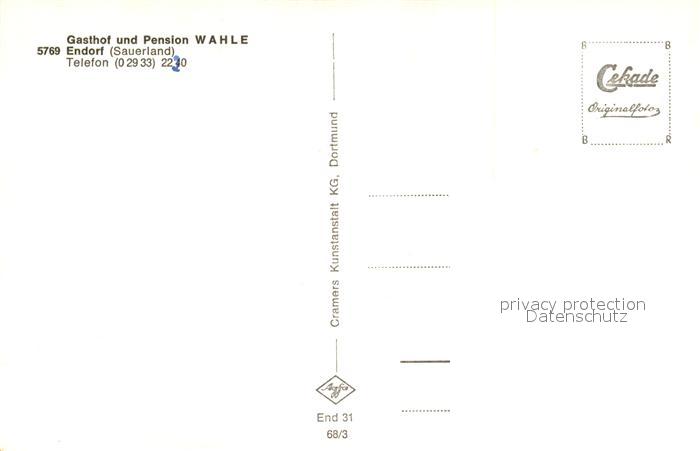 73364580 alte Postkarte Endorf Sauerland Gasthof Pension Wahle postalisch gelaufen Erhaltung siehe scans [WerneD78] KatCode: 11110005958044