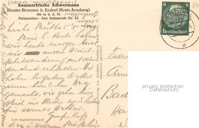 73619717 alte Postkarte Endorf Sauerland Kloster Brunnen postalisch gelaufen Erhaltung siehe scans [WerneD78] KatCode: 11110005958044