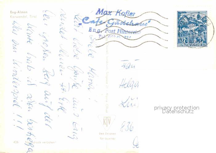 72626761 alte Postkarte Eng Alm Almen Karwendelgebirge postalisch gelaufen Erhaltung siehe scans [FriedD77] KatCode: 11390335070936