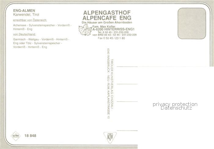 73167382 Eng Alm Karwendel Holzhaeuser Achensee Alpengasthof postalisch nicht gelaufen Erhaltung siehe scans [LiesaD40] KatCode: 11390335070936