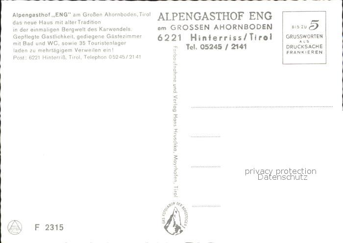 72485329 Eng Hinterriss Tirol Alpengasthof Eng am Gr Ahornboden postalisch nicht gelaufen Erhaltung siehe scans KatCode: 11390335070936
