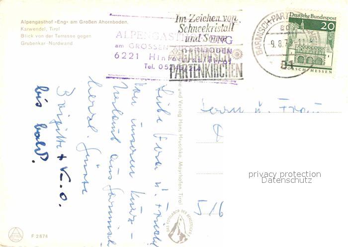 72895414 alte Postkarte Eng Hinterriss Tirol Alpengasthof Eng am Grossen Ahornboden postalisch gelaufen Erhaltung siehe scans [WerneD78] KatCode: 11390335070936