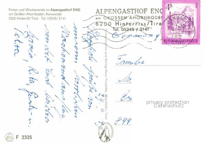 72651881 alte Postkarte Eng Hinterriss Tirol Alpengasthof Eng Bar Gaststube Panorama postalisch gelaufen Erhaltung siehe scans [WerneD78] KatCode: 11390335070936