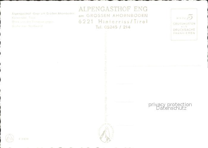 72485330 Eng Hinterriss Tirol Alpengasthof Eng Terrasse postalisch nicht gelaufen Erhaltung siehe scans KatCode: 11390335070936