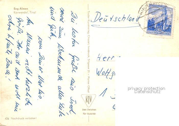 73313234 alte Postkarte Eng Hinterriss Tirol Eng-Alm postalisch gelaufen Erhaltung siehe scans [NatalD47] KatCode: 11390335070936