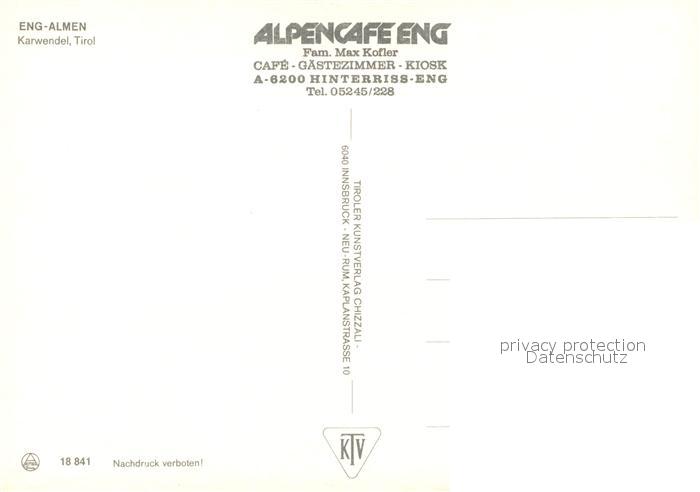 73233500 Eng Hinterriss Tirol Eng Almen im Karwendel postalisch nicht gelaufen Erhaltung siehe scans [FriedD77] KatCode: 11390335070936