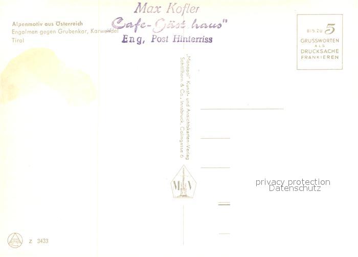 73185232 Eng Hinterriss Tirol Engalmen gegen Grubenkar postalisch nicht gelaufen Erhaltung siehe scans [LiesaD40] KatCode: 11390335070936