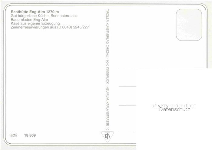 72674004 Eng Hinterriss Tirol Rasthuette Eng Alm Bauernladen Gaststube postalisch nicht gelaufen Erhaltung siehe scans [WerneD78] KatCode: 11390335070936
