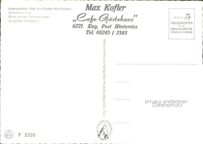 72495883 Eng Karwendel Alpengasthof Eng am Gr Ahornboden Terrasse postalisch nicht gelaufen Erhaltung siehe scans KatCode: 11390335070926