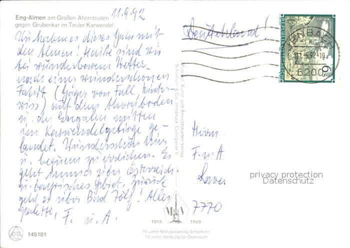 72181107 alte Postkarte Eng Karwendel Eng Almen Gross Ahornboden Grubenkar Karwendel postalisch gelaufen Erhaltung siehe scans KatCode: 11390335070926