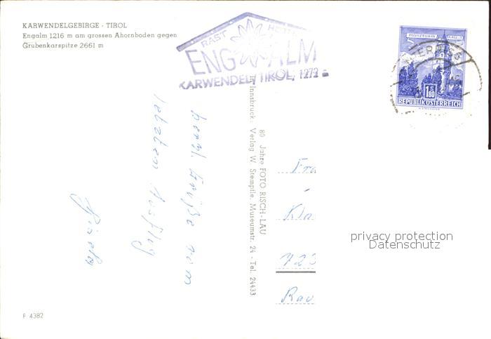 72485320 alte Postkarte Eng Karwendel Engalm Brunnen Gr Ahornboden Grubenkarspitze postalisch gelaufen Erhaltung siehe scans KatCode: 11390335070926