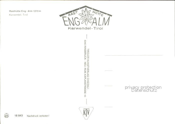 72288294 Eng Karwendel Rasthuette postalisch nicht gelaufen Erhaltung siehe scans KatCode: 11390335070926