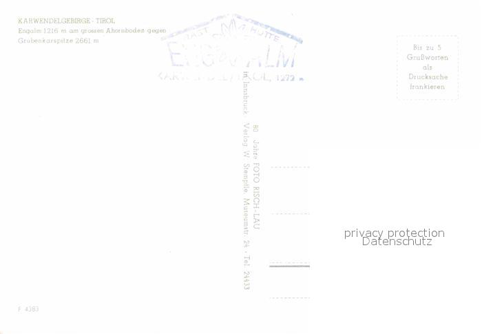 72736117 Engalm am grossen Ahornboden gegen Grubenkarspitze Karwendelgebirge postalisch nicht gelaufen Erhaltung siehe scans [FriedD77] KatCode: 11390335070926