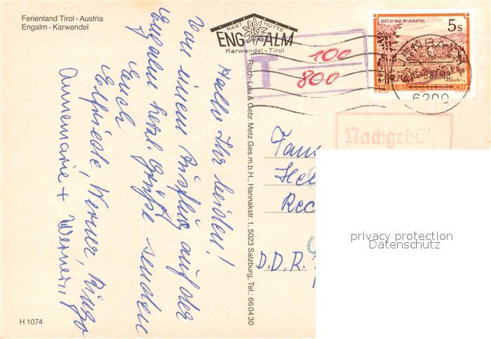 73481141 alte Postkarte Engalm Kaeserei Landschaftspanorama Grosser Ahornboden postalisch gelaufen Erhaltung siehe scans [FriedD77] KatCode: 11390335070926