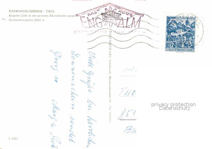 72840011 alte Postkarte Engalm Karwendelgebirge Ahornboden postalisch gelaufen Erhaltung siehe scans [LiesaD40] KatCode: 11390335070926