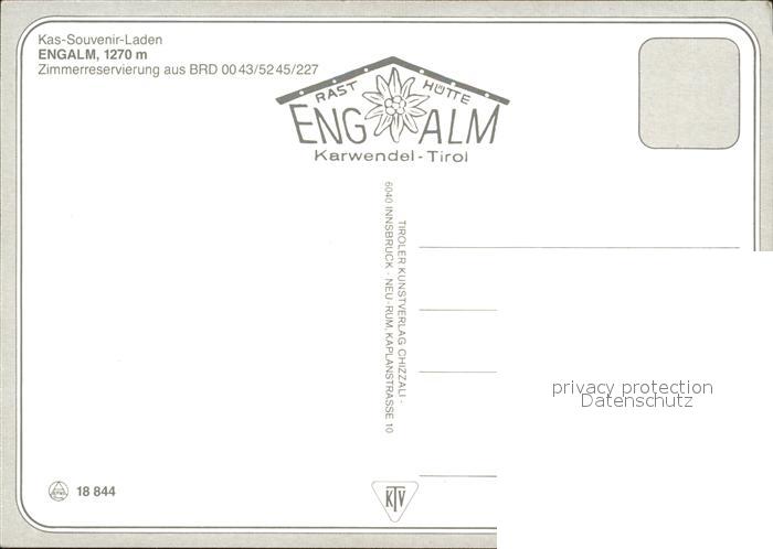 72483926 Engalm Kas Souvenir Laden Rasthuette Karwendel postalisch nicht gelaufen Erhaltung siehe scans KatCode: 11390335070926
