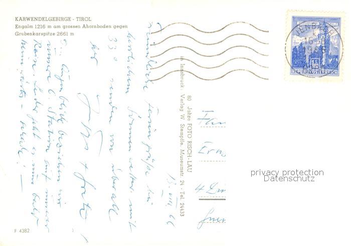 73339391 alte Postkarte Engalm mit grossen Ahornboden Grubenkarspitze postalisch gelaufen Erhaltung siehe scans [LiesaD40] KatCode: 11390335070926