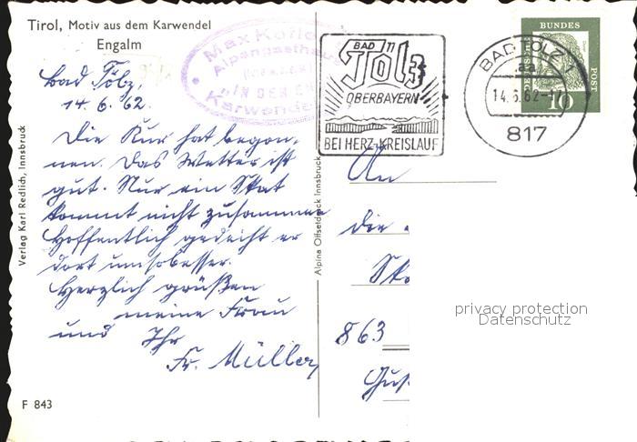 72495164 alte Postkarte Engalm Motiv aus dem Karwendel postalisch gelaufen Erhaltung siehe scans KatCode: 11390335070926