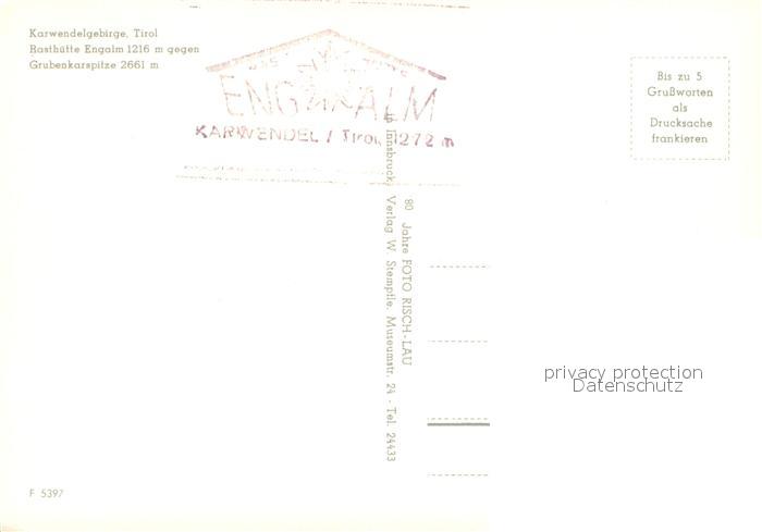 73678423 Engalm Rasthuette Engalm gegen Grubenkarspitze Karwendelgebirge Viehtraenke postalisch nicht gelaufen Erhaltung siehe scans [FriedD77] KatCode: 11390335070926