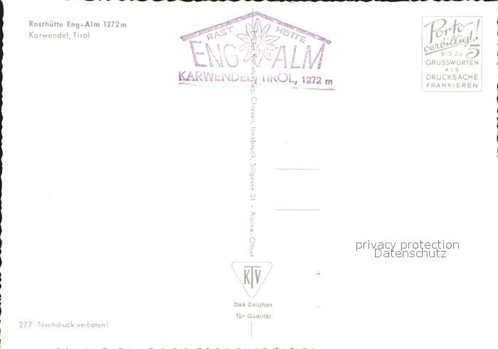 72500802 Engalm Rasthuette Karwendelgebirge postalisch nicht gelaufen Erhaltung siehe scans KatCode: 11390335070926