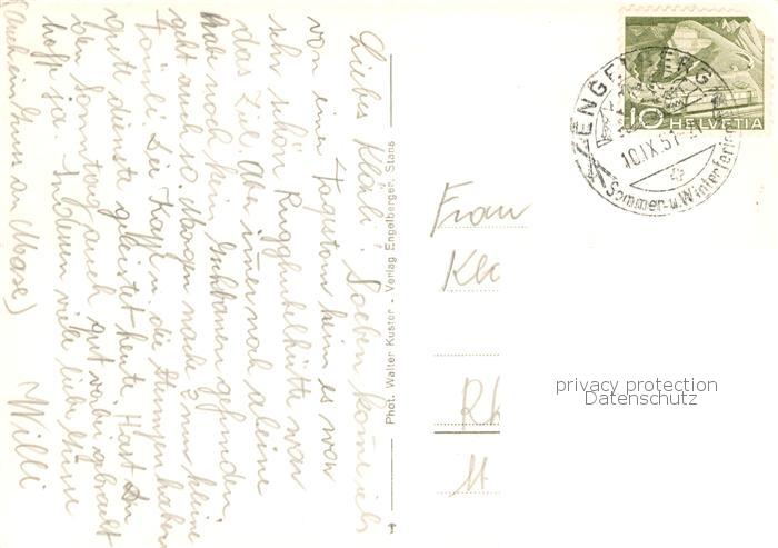 13852622 alte Postkarte Engelberg OW Pension Restaurant Baenklialp Heimelige Ecke im Restaurant Gartenpartie Panorama postalisch gelaufen Erhaltung siehe scans [WerneD78] KatCode: 11470150440294