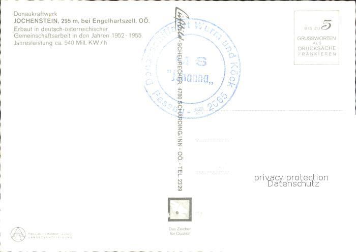 72284869 Engelhartszell Donau Oberoesterreich Fliegeraufnahme Donaukraftwerk Jochenstein postalisch nicht gelaufen Erhaltung siehe scans KatCode: 11390311041407