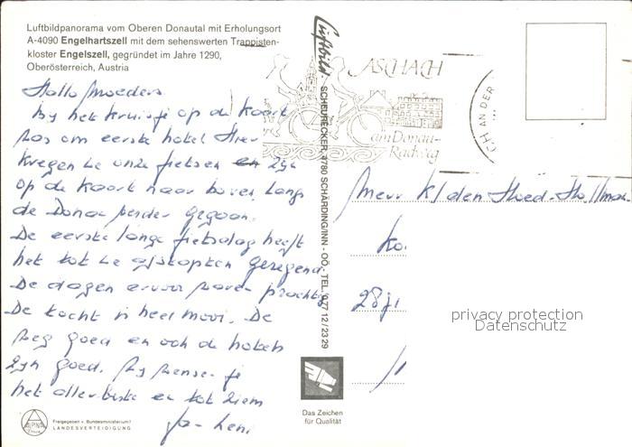 72495801 alte Postkarte Engelhartszell Donau Oberoesterreich Trappistenkloster Engelszell Fliegeraufnahme postalisch gelaufen Erhaltung siehe scans KatCode: 11390311041407
