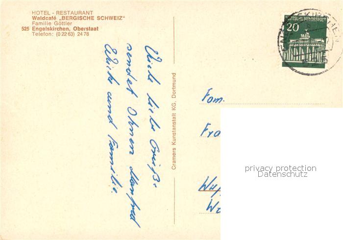 73646590 alte Postkarte Engelskirchen Hotel Restaurant WaldCafe Bergische Schweiz postalisch gelaufen Erhaltung siehe scans [FriedD77] KatCode: 11110005374008
