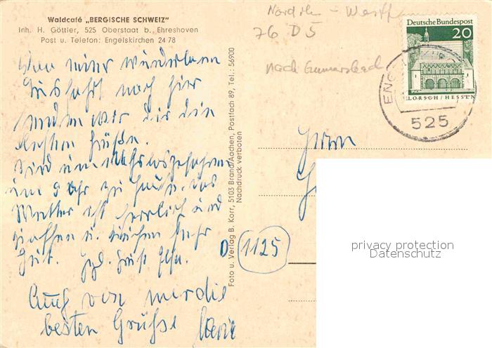 72917105 alte Postkarte Engelskirchen Waldcafe Bergische Schweiz postalisch gelaufen Erhaltung siehe scans [NatalD47] KatCode: 11110005374008