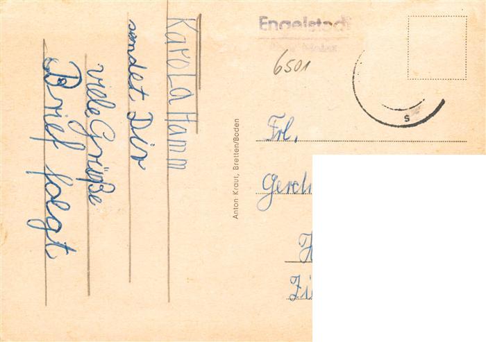 73887333 alte Postkarte Engelstadt Kirche Ortspartien postalisch gelaufen Erhaltung siehe scans [FriedD77] KatCode: 11110007339016