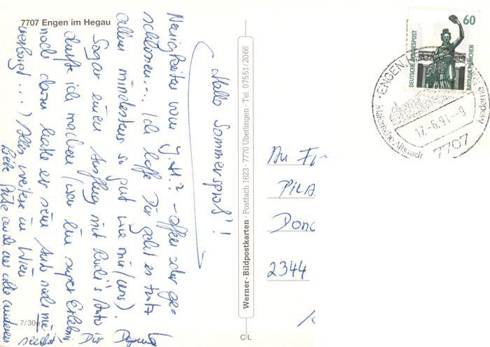 73881751 alte Postkarte Engen Hegau Fliegeraufnahme postalisch gelaufen Erhaltung siehe scans [FriedD77] KatCode: 11110008335022
