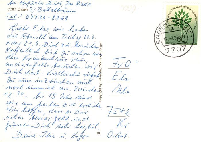 73937585 alte Postkarte Engen Hegau Panorama Kirche Schloss Brunnenfiguren Rathaus postalisch gelaufen Erhaltung siehe scans [WerneD78] KatCode: 11110008335022