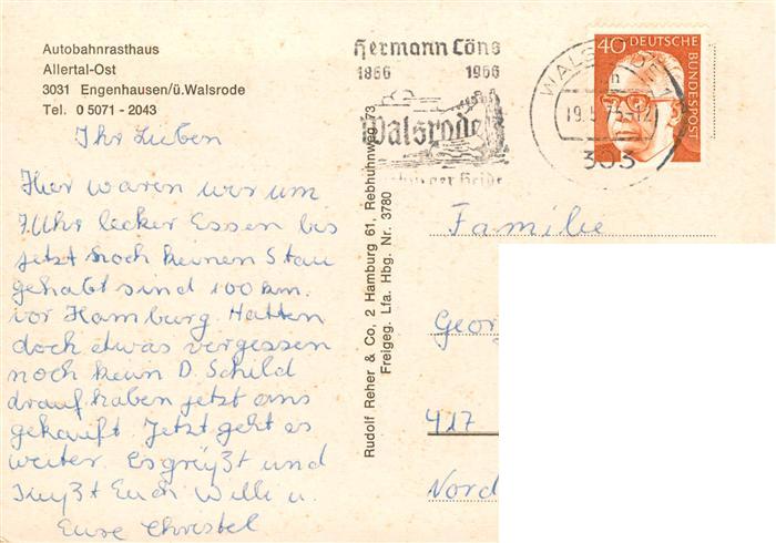 73871923 Engenhausen Walsrode Lueneburger Heide Autobahnrasthaus Allertal Ost Fliegeraufnahme postalisch gelaufen Erhaltung siehe scans [WerneD78] alte Postkarte Wern Katcode 11110003358022