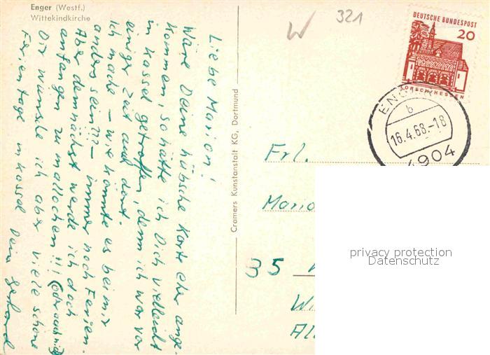 72616119 alte Postkarte Enger Wittekindkirche postalisch gelaufen Erhaltung siehe scans [WerneD78] KatCode: 11110005758008