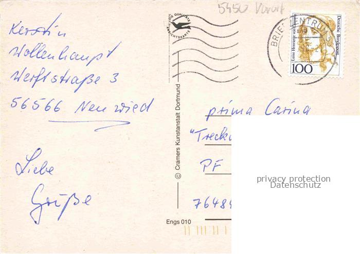 74050113 alte Postkarte Engers Altes Rathaus Panorama Duckesje Wasserturm Rheinkapelle postalisch gelaufen Erhaltung siehe scans [WerneD78] KatCode: 11110007138045