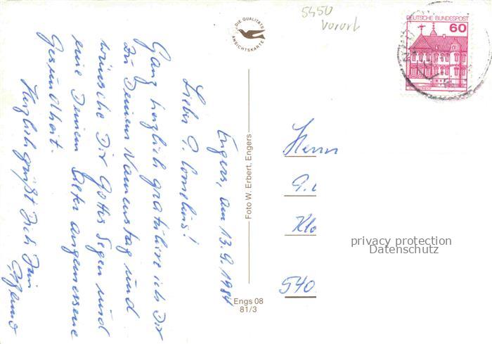 74050281 alte Postkarte Engers Pfarrkirche Marktplatz Rathaus Anlagen postalisch gelaufen Erhaltung siehe scans [WerneD78] KatCode: 11110007138045