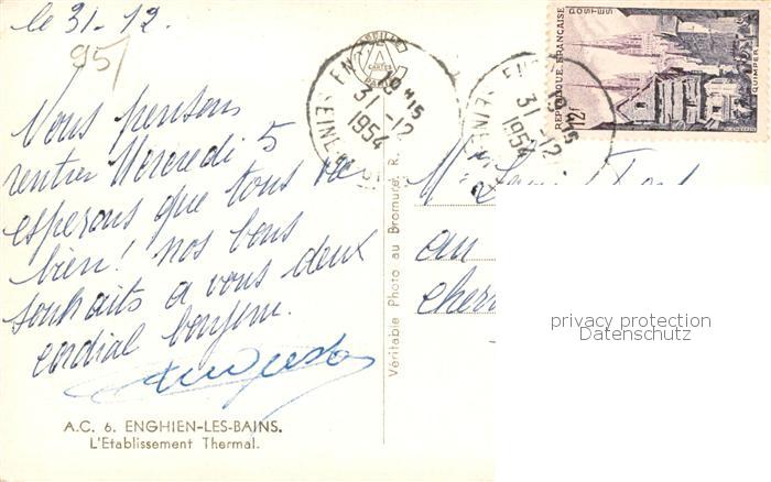 13795538 Enghien-les-Bains 95 Val-d Oise Etablissement Thermal postalisch gelaufen Erhaltung siehe scans [WerneD78] carte postale Wern Katcode 11170095295210