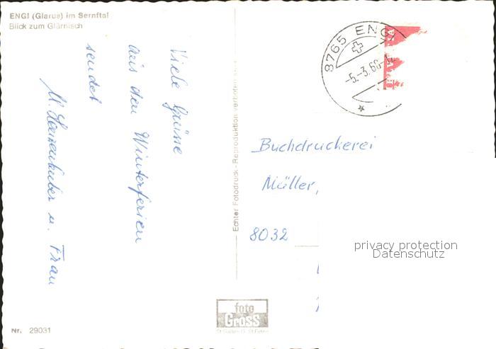 11837343 alte Postkarte Engi Sernftal Blick Glaernisch postalisch gelaufen Erhaltung siehe scans KatCode: 11470090300868