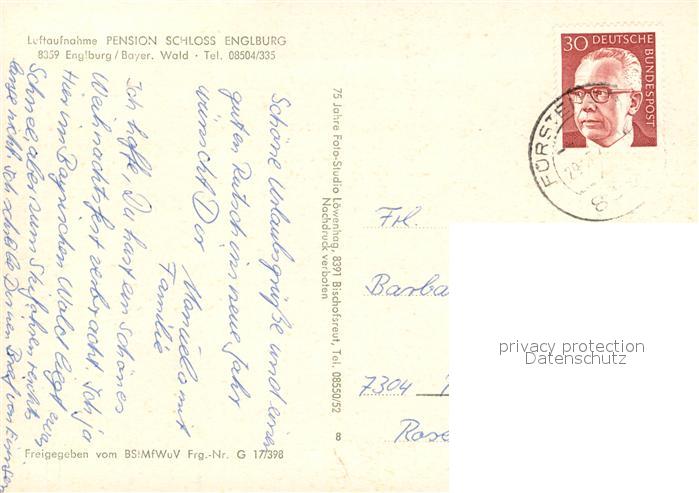 73091589 alte Postkarte Englburg Niederbayern Fliegeraufnahme Pension Schloss Englburg postalisch gelaufen Erhaltung siehe scans [KathaD81] KatCode: 11110009275152