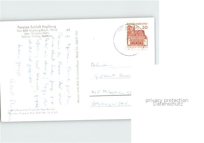 72299841 alte Postkarte Englburg Niederbayern Pension Schloss Englburg Fliegeraufnahme postalisch gelaufen Erhaltung siehe scans KatCode: 11110009275152