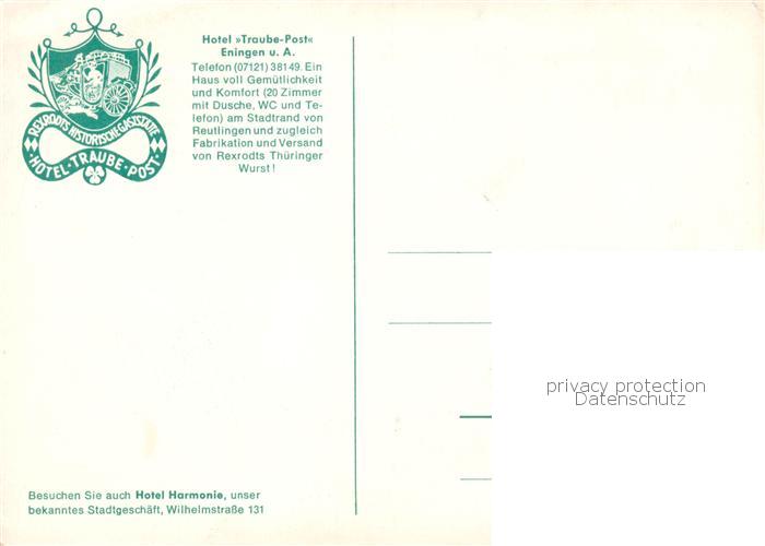 73866613 Eningen Achalm Hotel Traube Post Restaurant Metzgerei Kuenstlerkarte postalisch nicht gelaufen Erhaltung siehe scans [FriedD77] KatCode: 11110008415019