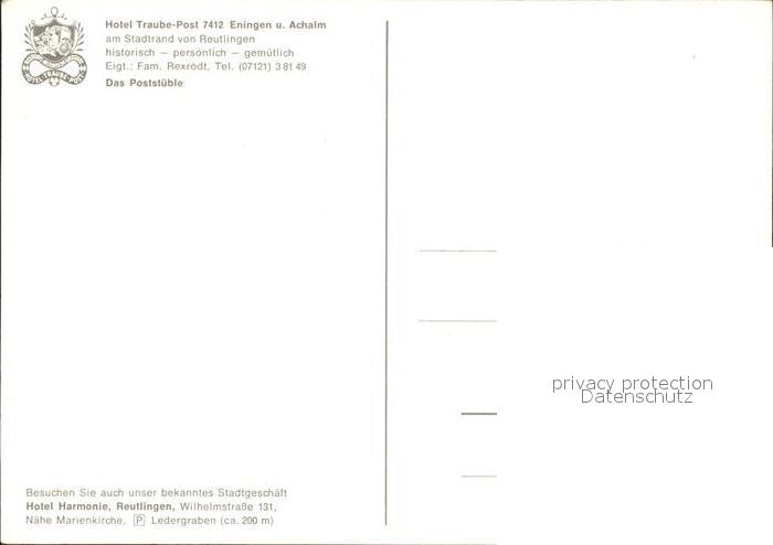 72455167 Eningen Achalm Hotel Traube postalisch nicht gelaufen Erhaltung siehe scans KatCode: 11110008415019