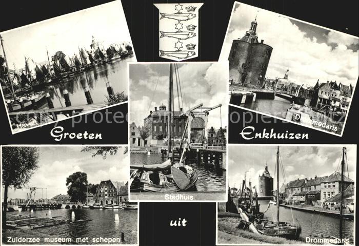 old postcard Enkhuizen Hafen Zuiderzee postalisch gelaufen Erhaltung siehe scans