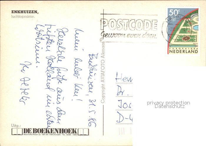 old postcard Enkhuizen luchtopname Hafen Fliegeraufnahme postalisch gelaufen Erhaltung siehe scans