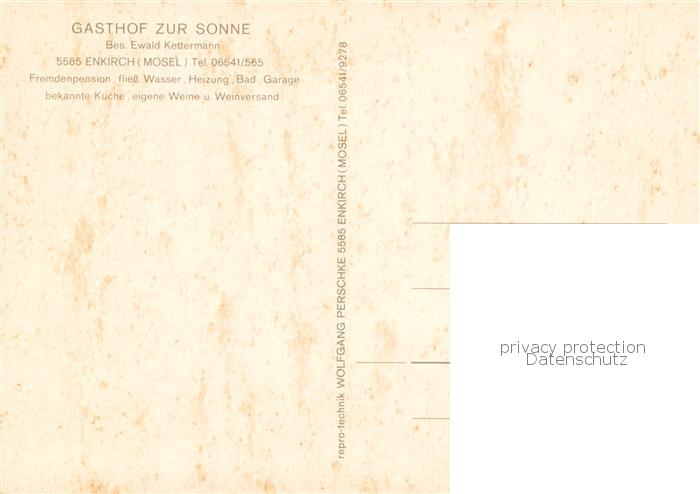 73843954 Enkirch Mosel Gasthof zur Sonne postalisch nicht gelaufen Erhaltung siehe scans [WerneD78] KatCode: 11110007231029