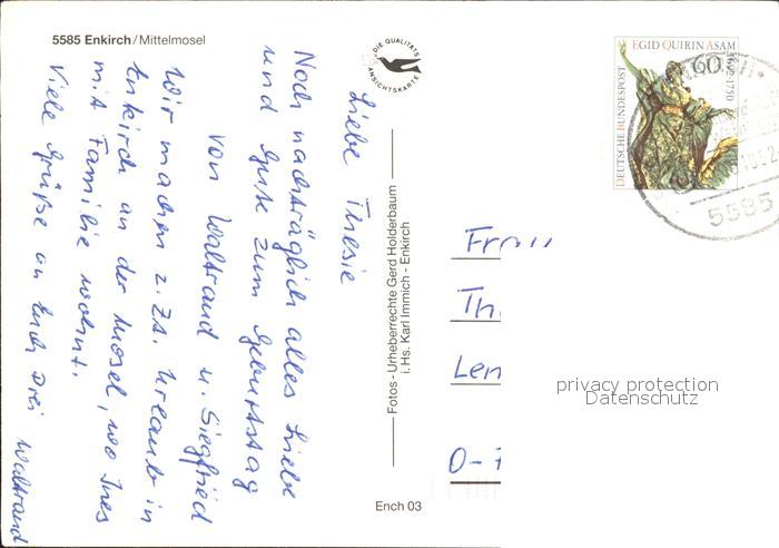 72364928 alte Postkarte Enkirch Mosel Hospital Weingasse Fliegeraufnahme Mosel postalisch gelaufen Erhaltung siehe scans KatCode: 11110007231029
